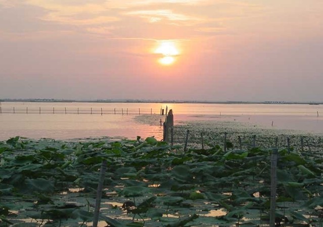 唐宋時期,氣候轉為暖濕,氣溫與降水均高出以往,海平面上升,海潮倒灌日趨嚴重,宋《吳郡志》載:“昆山雖經(jīng)山海,自古無潮汐。紹興中。始有潮至縣郡。至是,潮忽大至,逐過夷亭(今唯亭鎮(zhèn))。”上述情況造成河道淤塞,河水宣泄不暢,陽澄湖洼地上的河道遂擴大演變成湖泊,最后連成一體形成陽澄湖。