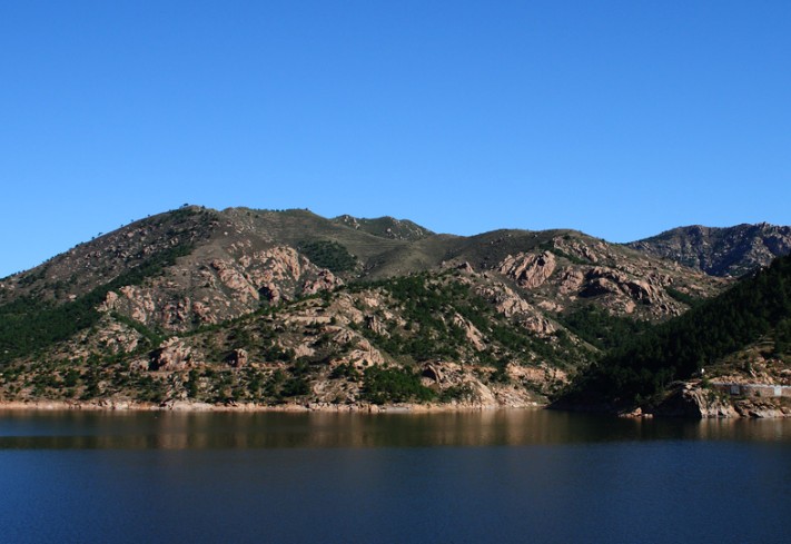 打虎石水庫位于寧城縣西部,老哈河支流 ── 黑里河下游,控制流域面積540平方公里,總庫容1.2億立方米,是內(nèi)蒙古自治區(qū)境內(nèi)的以灌溉為主,兼顧防洪、發(fā)電、養(yǎng)魚、旅游等綜合利用的大型水庫之一,屬水利部一級(jí)管理單位。 打虎石水庫橫斷黑里河。由于黑里河水流經(jīng)林區(qū),沿途植被茂密,因此庫區(qū)蓄水含沙量極低,水體蔚藍(lán)清澈。近6000畝的水面坦蕩遼闊,碧波萬頃,水天一色。版權(quán)所有山東聊城聊之旅國際旅行社有限公司,轉(zhuǎn)載必究!每逢盛夏時(shí)節(jié),群山倒影,波瀾不驚,鳥飛魚躍,漁船點(diǎn)點(diǎn),仿佛人間仙境。