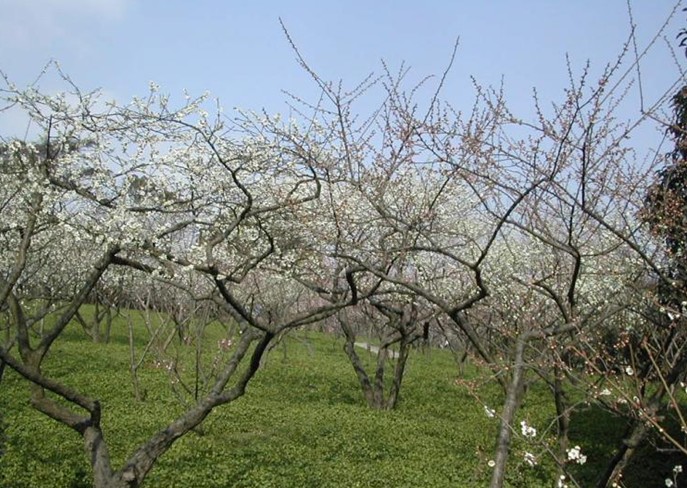 梅園以梅花馳名。梅園的梅花已有七十多年的栽培歷史,現(xiàn)有三四十個品種,著名的有潔白素凈的玉蝶梅,有花如碧玉萼如翡翠的綠萼梅,有紅顏淡妝的宮粉梅,有胭脂滴滴的朱砂梅,有濃艷如墨的墨梅,更有枝干盤曲、矯若游龍的龍游梅等。并有造型幽雅、虬枝倒懸、枯樹老干、疏影橫斜的梅樁藝術盆景。