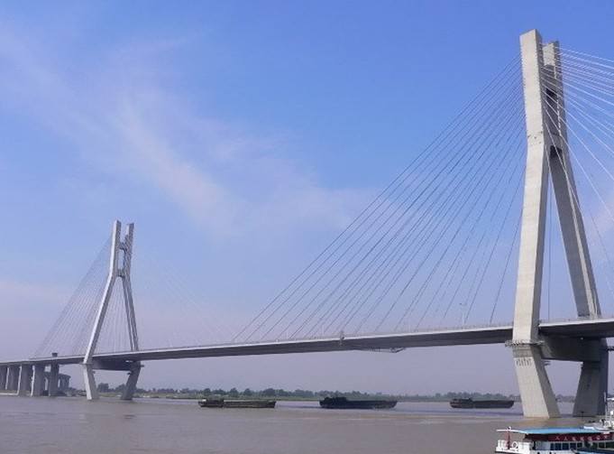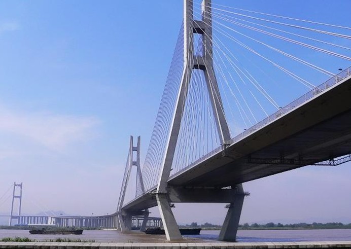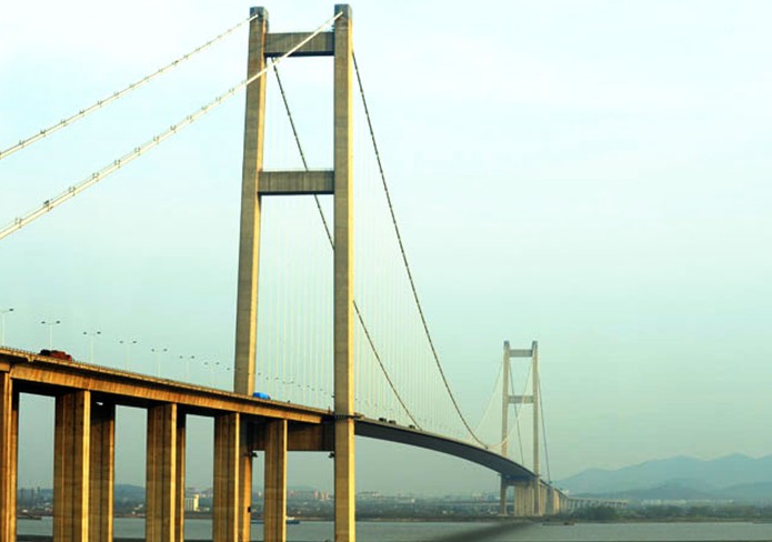 位于江蘇省鎮(zhèn)江、揚州兩市西側(cè),為目前我國第一大跨徑的組合型橋梁,其建設(shè)過程中攻克多項世界性技術(shù)難題,當(dāng)時是國內(nèi)工程規(guī)模最大、建設(shè)標(biāo)準(zhǔn)最高、投資最大、技術(shù)最復(fù)雜、技術(shù)含量最高的現(xiàn)代化特大型橋梁工程,是我國第一座剛?cè)嵯酀慕M合型橋梁。