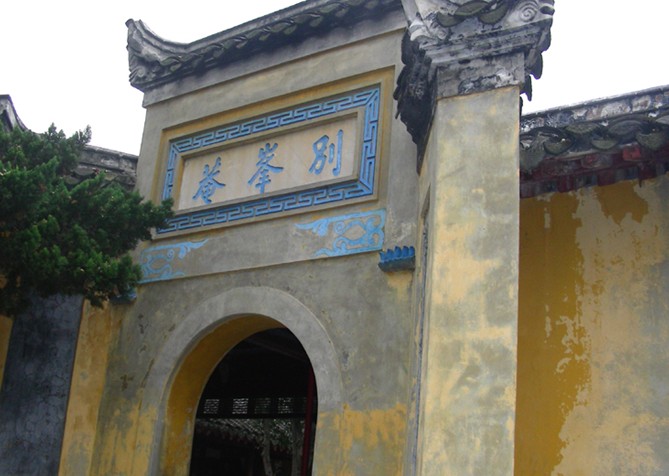 鄭板橋讀書處在江蘇鎮(zhèn)江的別峰庵內(nèi),是清雍正年間揚(yáng)州八怪之一鄭板橋讀書之所在。別峰庵呈四合院形制,一方花壇,數(shù)株桂花修竹,環(huán)境幽雅宜人,門上保留著鄭氏當(dāng)年手書對(duì)聯(lián)"室雅何須大,花香不在多",對(duì)讀書處的鐘愛溢于言表。 鄭板橋詩、書、畫“三絕”,筆下之竹尤為世人稱道,焦山隨處可見形態(tài)各異的修竹,觀察入微的鄭板橋自是得心應(yīng)手。有詩為證: 靜室焦山十五家,家家有竹有籬笆?!‘媮沓黾堬w騰上,欲向天邊掃暮霞?!∴嵤夏珜氃诖颂幜宅槤M目,“難得糊涂”、“吃虧是福”之類警句拓片更是令南來北往的游人心向往之。