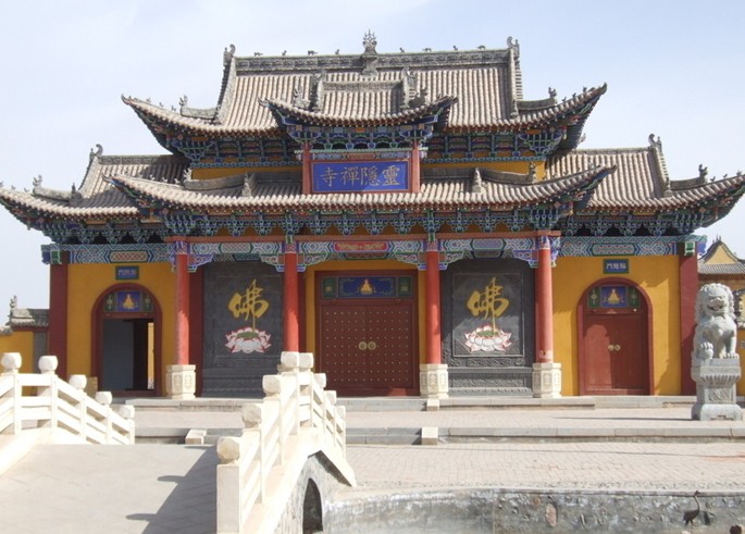 云林禪寺?,F(xiàn)在天王殿前的那塊“云林禪寺”巨匾,即是當年康熙皇帝的御筆?!∮謧黛`隱寺原來叫“靈鷹寺”。始建于唐初。相傳1400多年以前,今秦嶺灣門前,有一座筆架山,筆架山左側(cè),是塊鳳凰朝陽地。原先這里荊棘縱橫,荒無人煙。