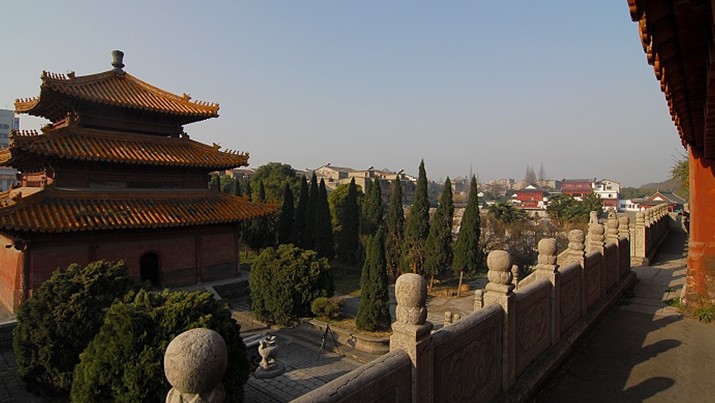 玄妙觀位于荊北路中段,其名體現(xiàn)了道家玄學(xué)思想的精髓。該觀始建于唐代,后毀于兵燹,現(xiàn)存建筑為明萬(wàn)歷十二年(公元1584年)重建,主建筑玉皇閣三重飛檐,狀似塔形,屋頂有一青銅蓮花座,猶如盛開(kāi)的金蓮,與屋頂閃爍的琉璃瓦融為一體,分外耀眼。觀后6米高臺(tái)之上建有三天門和玄武閣,均為重檐歇山頂,是為明清重建之佐證。版權(quán)所有山東聊城聊之旅國(guó)際旅行社有限公司,轉(zhuǎn)載必究!玉皇閣右側(cè)方立有一高大的石碑“九老仙都宮記”碑。此碑立于元順帝至正三年(公元1334年),是江漢平原所能見(jiàn)到的最早的碑刻,碑文記述當(dāng)時(shí)的玄妙觀主持道人唐洞云被元順帝封為八仙后的之第九仙。碑文為元代著名學(xué)士歐陽(yáng)元撰寫、元代書法大家危素手書,其史料及藝術(shù)值均彌足珍貴。