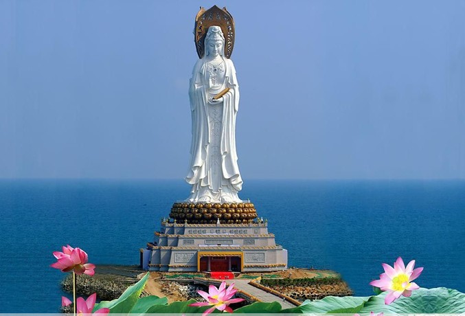 1993年中國(guó)國(guó)務(wù)院宗教局和海南人民政府批準(zhǔn)興建南山寺,并在寺前的海中塑108米高之觀音圣像。此像由海南三亞南海海上觀音功德基金會(huì)發(fā)心敬建,三尊化一體,巍峨壯觀,實(shí)乃世界造像之最。敬造工程因其規(guī)模宏偉、意義殊勝、佛理底蘊(yùn)豐富,被譽(yù)為“世界級(jí)、世紀(jì)級(jí)”的佛事工程。中國(guó)佛教協(xié)會(huì)趙樸初會(huì)長(zhǎng)欣然為圣像題名——“南海海上觀音”。