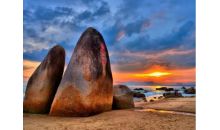 天涯海角游覽區(qū),位于三亞市區(qū)西南23公里處,以美麗迷人的熱帶自然海濱風光,悠久獨特的歷史文化和濃郁多彩的民族風情馳名海內(nèi)外,是海南建省20年第一亮麗品牌。它依山傍海,碧海、青山、白沙、巨磊、礁盤渾然一體,宛若七彩交融的丹青畫屏;椰林、波濤、漁帆、鷗燕、云層輝映點襯,形成南國特有的椰風海韻。