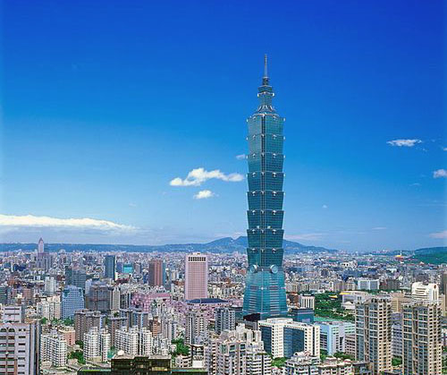 臺北101(Taipei 101),又稱臺北101大樓,在規(guī)劃階段初期原名臺北國際金融中心(Taipei Financial Center),是目前世界第二高樓(2010年)。位于我國臺灣省臺北市信義區(qū),由建筑師李祖原設(shè)計,KTRT團隊建造,保持了中國世界紀(jì)錄協(xié)會多項世界紀(jì)錄。