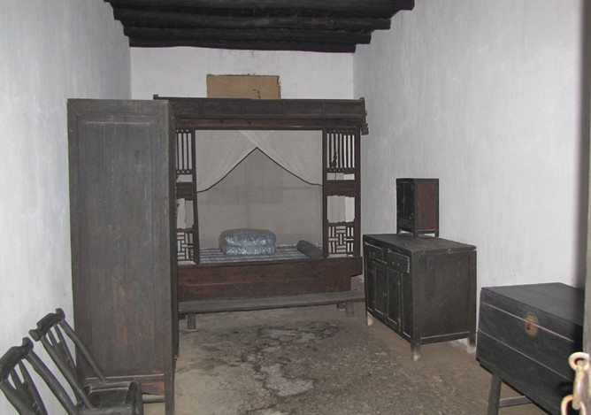 在堂屋的右邊是一間小臥室,是董必武當(dāng)年出生的地方,也是1910年董必武與黃俊貞同志結(jié)婚的房間。房間內(nèi)很簡樸,只有一張床和兩口木箱。在這間臥室,董必武的母親生下了他們姐弟四個(gè),兩個(gè)姐姐,一個(gè)弟弟——董覺生。