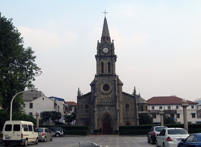 始建于清同治十一年(1872年),光緒二十五年(1899年)增建鐘樓。整個建筑由教堂、鐘樓、主教公署藏經(jīng)樓以及附屬用房組成,具有典型的哥特式建筑風格。它具有較高的歷史、文化、藝術(shù)價值,也是當年法帝國主義入侵中國的重要見證。
