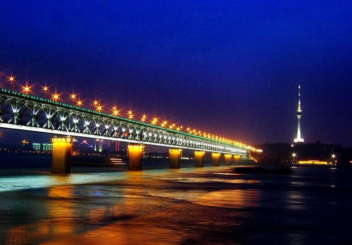 人行道內(nèi)緣后來增設(shè)了鋼筋混凝土結(jié)構(gòu)的防撞護(hù)欄。每隔32米矗立一對燈柱,兼作無軌電車供電線路的支架。入夜成串的橋燈遠(yuǎn)望如過江銀龍,壯麗奇絕。大橋管柱基礎(chǔ)、墩臺(tái)、梁體及鐵路聯(lián)絡(luò)線由鐵道部大橋工程局施工,公路橋橋面及兩岸引道由武漢市建設(shè)局協(xié)同施工。大橋工程耗用混凝土和鋼筋混凝土12.63萬立方米;版權(quán)所有山東聊城聊之旅國際旅行社有限公司,轉(zhuǎn)載必究!安裝鋼梁24 372噸;打入鋼筋混凝土管樁3 000根,總長62.5公里;直徑1.55米的鋼筋混凝土管柱224根,總長3 752米。總結(jié)算投資1.38億元,大橋主體工程投資7 189萬元。公路橋橋面由武漢市建設(shè)局負(fù)責(zé)維修管理,其余均由鄭州鐵路局武漢長江大橋橋工處維修管理。