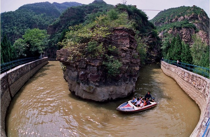 紅旗渠是1960年林縣人民在太行山懸崖峭壁上盤山開鑿的,把漳河水引入林縣。沿漳河南岸繞懸崖,越峽谷,逢山開洞,遇河架橋,開鑿長達70公里的總干渠,渠高4.3米,寬8米,引水量18.3立方米/秒。從分水嶺向下,分鑿三條干渠。第一條干渠沿太行山東麓向南與英雄渠匯合,全長41.5公里;二干渠與英雄渠匯流處稱“紅英匯流”,渠水奔騰,飛瀑噴雪,好似銀河傾瀉。第二干渠全長48公里,東南流入安陽縣。第三干渠東北流經(jīng)4公里長的曙光洞而入東崗鄉(xiāng)。整個工程劈開山頭1,250座,鑿?fù)ㄋ矶?11個,架設(shè)渡槽152條,挖砌土石1,640萬立方米,用工4,000多萬個。版權(quán)所有山東聊城聊之旅國際旅行社有限公司,轉(zhuǎn)載必究! 紅旗渠的建成,全縣形成了引、蓄、提相結(jié)合的水利網(wǎng),建水庫、池塘400多個,建中、小型水電站80多個,灌溉面積40萬畝,解決了人畜飲水的困難,并提供了工業(yè)用水。紅旗渠在國內(nèi)外享有很高的知名度,被譽為“人造天河”、“當(dāng)代萬里長城”。