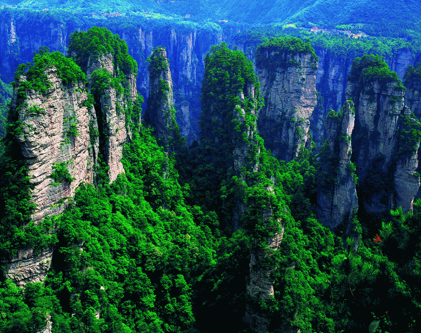 武陵源屬世界上罕見的砂巖風林地貌,整個景區(qū)內(nèi),溝壑縱橫,巖峰高聳,綠樹翠曼,獸鳥成群,有“大自然迷宮”、“天下第一奇山”這美譽。億萬年前,這里曾是一片波濤翻的海洋。歲月悠悠,滄海桑田。大自然威力無邊的“燕山運動”,將這里逐漸抬升為陸地、山脈、江河,隨后又以揮灑自如的鬼斧神工在這里“穿透切割”、“精雕細琢”,從而有了今天這般個有原始生態(tài)體系的砂巖、峰林、峽谷地貌,構(gòu)成了溪水潺潺、奇峰聳立、怪石崢嶸的獨特自然景觀。