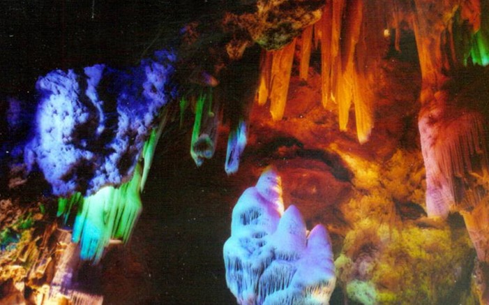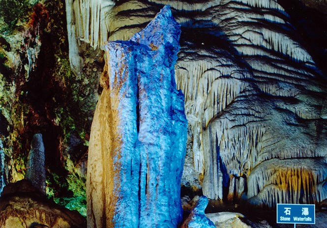 第二景區(qū)溢彩殿是目前發(fā)現(xiàn)洞內(nèi)形成最早的一個(gè)洞穴,距今約6億年,地勢(shì)開(kāi)闊,狀似峽谷,洞頂懸掛的鐘乳石,地面上的石筍星羅棋布、流光溢彩,故而得名。