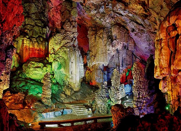 黃果樹大瀑布高77.8米、寬101.0米,是我國最大的瀑布,也是世界著名大瀑布之一。 早在三百多年前,我國著名的地理學(xué)家、旅行家徐霞客就描述其"水由溪上石,如煙霧騰空,勢(shì)其雄厲,所謂珠簾鉤不卷,匹練掛遙峰,具不足擬其狀也。"奔騰的河水自70多米高的懸崖絕壁上飛流直瀉犀牛潭, 發(fā)出震天巨響,如千人擊鼓,萬馬奔騰,聲似雷鳴,遠(yuǎn)震數(shù)里之外,使游人驚心動(dòng)魄。黃果樹瀑布還有大水、中水、小水之分,常年流量中水為每秒20立方米,時(shí)間在九至十個(gè)月。流量不同,景觀也不一樣。大水時(shí),流量達(dá)每秒1500立方米,銀浪滔天,卷起千堆雪,奔騰浩蕩,勢(shì)不可擋, 其壯觀自不待說。瀑布激起的水珠,飛濺一百多米高,如云漫霧繞,灑落在上面的黃果樹街市,即使晴天,也要撐傘而行,故有"銀雨灑金街"的稱譽(yù)。版權(quán)所有山東聊城聊之旅國際旅行社有限公司,轉(zhuǎn)載必究!上騰的水珠,如億萬顆閃耀的明星,隨風(fēng)浮沉,漫天飄灑,使人目不暇接。 中水時(shí)瀑布明顯分成四支,各有形態(tài)和個(gè)性,從左至右,第一支水勢(shì)最小,又撒得開,秀美;第二支水勢(shì)最大,上下一般粗,豪壯;第三支水勢(shì)居二,上大下小,雄奇;第四支水勢(shì)居三,上窄下寬,瀟灑。其實(shí),中水時(shí)景觀最好,瀑布清晰,輪廓分明,雪白的瀑水在碧綠的深潭和藍(lán)天的 襯托下以及橫貫在瀑布前五彩繽紛彩虹的裝點(diǎn)下,猶如一幅美麗的圖畫。小水時(shí),瀑布分成的四支,鋪展在整個(gè)巖壁上,仍不失其"闊而大"的氣勢(shì)。黃果樹瀑布素以"雄偉、壯觀"而名揚(yáng)四海,但較之世界名瀑,還有它獨(dú)有奇特之處,就是最神奇的隱在大瀑布半腰上的水簾洞。水簾洞位于大瀑布四十米至四十七米的高度上,全長一百三十四米,有六個(gè)洞窗、五個(gè)洞廳、三股洞泉和六水簾洞個(gè)通道。走進(jìn)大瀑布本身就已驚心動(dòng)魄,神移魂飛了,而要在大瀑布里面穿行,確感不免神悚,但到了黃果樹瀑布,而不進(jìn)水簾洞,就不會(huì)真正領(lǐng)略到黃果樹瀑布的雄奇和壯觀,那將是人生一大憾事。版權(quán)所有山東聊城聊之旅國際旅行社有限公司,轉(zhuǎn)載必究!穿越水簾洞,還有一個(gè)絕妙奇景,從各個(gè)洞窗中觀賞到犀牛潭上的彩虹,這里的彩虹不僅是七彩俱全的雙道而且是動(dòng)態(tài)的,只要天晴,從上午九時(shí)至下午五時(shí),都能看到,并隨你的走動(dòng)而變化和移動(dòng)。前人說:"天空之虹以蒼天作襯,犀牛潭之虹以雪白之瀑布襯之",故題"雪映川霞"。