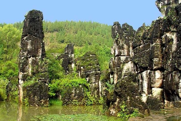 天星景區(qū)是黃果樹風(fēng)景區(qū)中已全部開發(fā)的景區(qū),景區(qū)規(guī)劃面積7平方公里,開發(fā)游覽面積4.5平方公里,分 為三個(gè)相連的片區(qū),即:天星盆景區(qū)、天星洞景區(qū)和水上石林區(qū)。這里石筍密集,植被茂盛,水到景成,集山、水、林、洞為一體。天星盆景區(qū)長約800米,位于500米長伏流表面和河岸西側(cè)。有大大小小的天然山石及水石盆景。一條三公里的石板小道,穿行于石壁、石壕、石縫之中,逶迤于盆景之上。沿小道游覽,抬頭是景、低頭是景,前后左右都是景,仿佛到了天上的仙境,地下的迷宮。漫步其間,既領(lǐng)略山水之美、又可品味石林之雄奇。版權(quán)所有山東聊城聊之旅國際旅行社有限公司,轉(zhuǎn)載必究!近處石林,遠(yuǎn)處群山,倒映碧水之上,展現(xiàn)在眼前的是一幅色彩淡雅景色協(xié)調(diào)的天然山水畫。有的還可撐上竹筏,穿行于峽谷、石林之中,真可謂輕舟蕩碧波,人在畫中游。天星盆景區(qū)還有美女榕、仙山群掌、歪梳石、熊貓抱竹、雄鷹展翅等形態(tài)十分畢真的天然景觀。天星洞景區(qū)在天星景區(qū)中段,除游覽觀賞洞內(nèi)的鐘乳石外,洞外景觀也很特別,一線天高長均在二十多米而且狹窄;冒水潭是暗河出口,大水時(shí),憑伏流沖擊的壓力,水可以沖起五六米高,甚為壯觀。水上石林區(qū),此段河床寬闊達(dá)400米,面積約0.4平方公里的石林就長在河床之中,任河水長年沖刷。石林間長著大片的仙人掌和小灌木,終年點(diǎn)綴著綠蔭。冰冷的石頭上,展現(xiàn)的都是生命的繁榮,所謂"石上流水,水上有石,石上有石,石上又有樹。"水上石林區(qū)有很多景觀,如群榕聚會(huì)、根王、根墻屏障、盤根畫壁、仙女飛天等,銀鏈墜潭瀑布和星峽飛瀑也分別處在水上石林的左右二側(cè)。 銀鏈墜潭瀑布,位于天星景區(qū)水上石林左上方。在黃果樹瀑布群中,它既不是以高取勝,也不是以闊或大驚人,而是以它那千絲萬縷的情態(tài)和如泣如訴的瀑聲,讓人看見就不想離開。版權(quán)所有山東聊城聊之旅國際旅行社有限公司,轉(zhuǎn)載必究!這個(gè)瀑布只有十余米高,上面成漏斗形,底部是槽狀溶潭。在潭沿面上隆起的石包,象一張張下覆的蓮葉,交錯(cuò)搭連,河水在每一張葉面上均勻鋪開,縱情漫流,象千千萬萬條大大小小的銀鏈,輕音嚷嚷地緩緩墜入溶潭,永遠(yuǎn)沒完沒了。