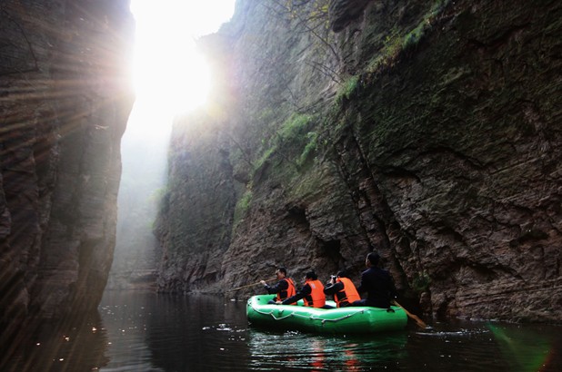龍?zhí)洞髰{谷是洛陽黛眉山世界地質(zhì)公園的核心景區(qū),是一條以典型的紅顏掌故群地質(zhì)地貌景觀為主的峽谷景區(qū)。谷內(nèi)關(guān)峽相望,潭瀑連珠,壁立萬仞,峽秀谷幽,經(jīng)過12億年的地質(zhì)沉淀合260萬年的水流切割旋蝕所形成的高峽甕谷、山崩地裂奇觀,堪稱世界一絕,人間少有。享有“中國嶂谷第一峽”、“古海洋天然博物館”、“峽谷絕品”和“黃河山水畫廊”等美名。