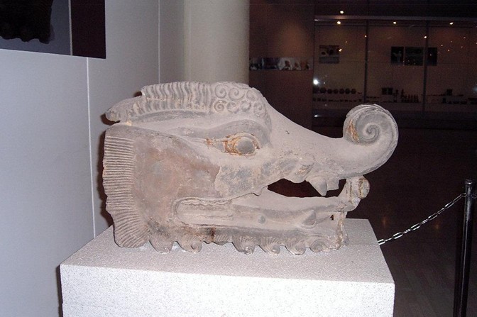這尊石辟邪1992年12月出土于孟津縣油坊街村。它由整塊石灰?guī)r雕成,長(zhǎng)2.97米,寬0.9米,高1.9米,昂首挺胸,張嘴吐舌,威風(fēng)凜凜,栩栩如生,是不可多得的漢代石雕藝術(shù)精品。