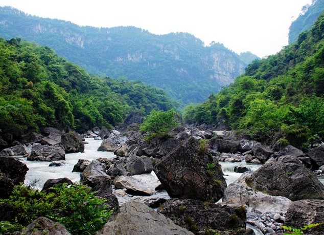 景區(qū)內(nèi)植被茂密,覆蓋度高,植被類型較豐富,大部分為亞熱帶原生性較1強的次生林。在河谷兩側(cè)斜坡上有原生性較強的石灰?guī)r山地常綠、落葉闊葉混交林和竹林;在河流周期性淹沒的河漫灘上以及河流兩岸水邊,有以窄葉蚊母樹、長柄竹葉榕、河灘冬青及二翅六道木為優(yōu)勢的河灘灌叢;在河谷以上低中山黃壤分布地區(qū),有以馬尾松林為優(yōu)勢的人工針葉林。風(fēng)景區(qū)內(nèi)植物種類豐富,有維管束植物414種,分別隸屬275屬116科。其中有不少種類的珍稀植物,如國家一級重點保護植物紅豆杉、國家二級重點保護植物櫸樹、香果樹、木莢紅豆樹、三尖杉、銀杏等。