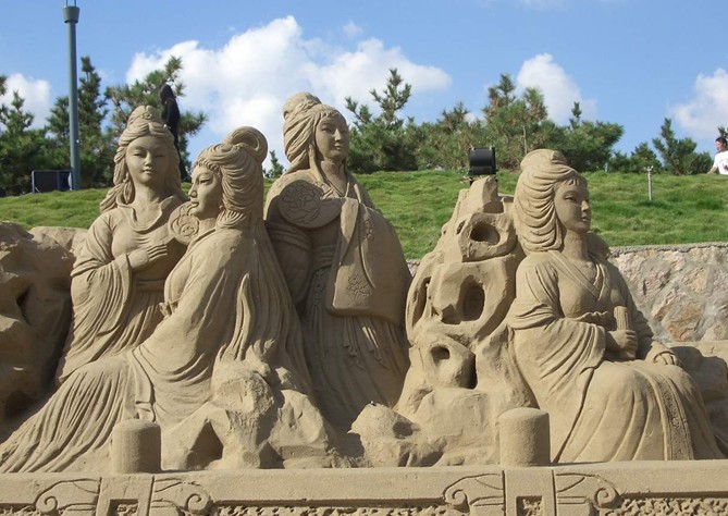 2003年舉辦的第五屆中國舟山國際沙雕節(jié)則首次采用比賽與展示相結(jié)合、集中與散點(diǎn)式相結(jié)合等形式,并第一次由國內(nèi)沙雕手完成主題沙雕的創(chuàng)作。沙雕作品展示的“絲綢之路”,主要由盛世中華、神氣新疆、異域古國等3部分內(nèi)容組成,沙雕長度在3000米以上。大型組合沙雕集中展示區(qū)域長300米,寬50米,主題附屬區(qū)域長150米,總用沙量達(dá)2萬立方米,最高處為13米,這將再次創(chuàng)下亞洲沙雕作品規(guī)模新記錄。