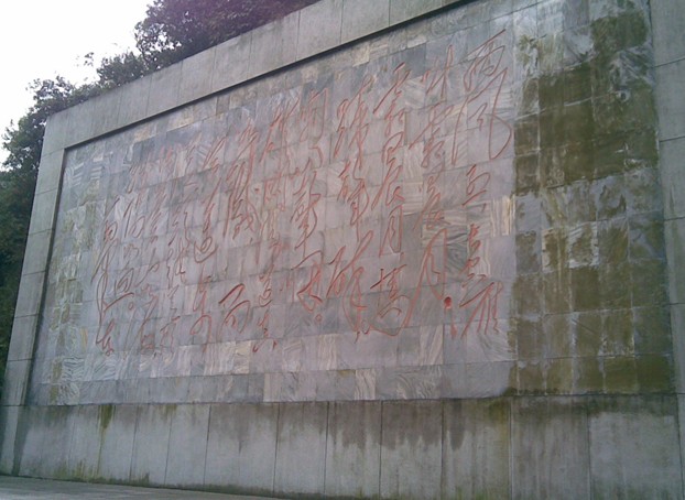 毛澤東填有《憶秦娥•婁山關(guān)》詞一首,描寫紅軍指戰(zhàn)員英勇鏖戰(zhàn)的壯烈情景。現(xiàn)以行草手書體放大鐫于高14米,寬25米的大理石碑上,益增雄關(guān)聲色。