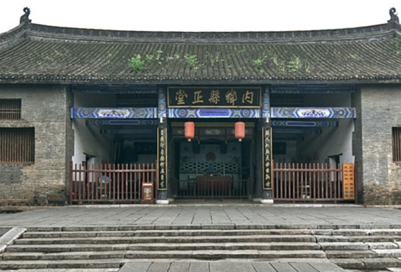 大堂兩側(cè)有議事廳,大堂后側(cè)有平房兩間,為衙皂房。過衙皂房即至重光門,門上懸掛“天理國法人情”金字匾額?;乩仁降淖呃龋瑖@兩側(cè)配房,過重光門,兩側(cè)有重檐雙回廊配房,正面為琴房,面闊5間。堂后院落兩側(cè)有配房,前后檐下皆有回廊,正面為迎賓廳。出迎賓廳又一進院落,正面為三堂,左右為回廊式配房。