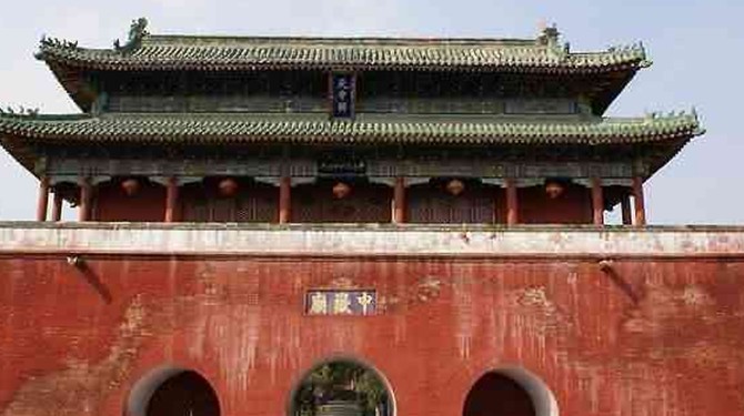 中華門(mén)中岳廟的前門(mén),原名“名山第一坊”,為木建牌樓,1942年改建為磚瓦結(jié)構(gòu)的原廡殿式牌坊,更名為“中華門(mén)”。門(mén)額內(nèi)外分別寫(xiě)有“依嵩”、“帶潁”、“嵩峻”、“天中”八字,簡(jiǎn)要地說(shuō)明了中岳廟所處的地理位置。