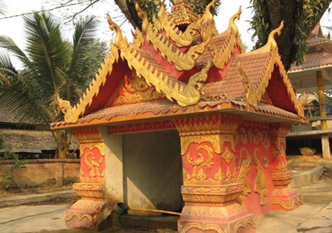 傣族水井的建筑頗具匠心,井身造型和裝飾,都采用傣族崇敬的大象、孔雀、塔等作造型。井身鑲了許多小圓鏡,莊重華貴,這是因?yàn)榇鲎逑菜?、敬水、用水表示?ài)情、表達(dá)祝福,凡是傣族村寨都有各種形狀的水井塔,曼金堡水井塔,就是典型的寶塔形水井。