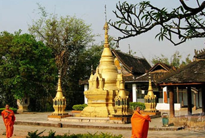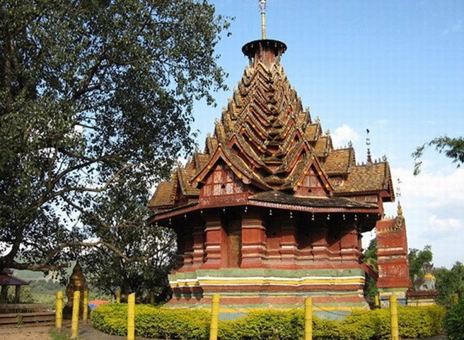 西雙版納景真八角亭位于景洪以西14公里,地處勐海縣景真山上,亭子因山而得名,是西雙版納的重要文物之一,建于公元1701年。西雙版納景真八角亭為磚木結(jié)構(gòu),呈八角形,亭身有31個斜面,鑲嵌彩色玻璃,并用金銀粉印出各種花卉、動物、人物圖案,在陽光的照射下,光彩奪目。