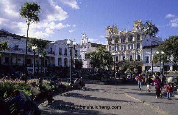 厄瓜多爾首都基多,位于國境北部,海拔2852米,雖然臨近赤道,但因地勢高峻,所以氣候宜人,四季如春,是理想的避暑勝地?;嘣瓰楣爬系挠〉诎踩顺鞘?,是印加帝國北部疆土的首都,城市建設(shè)與自然環(huán)境巧妙地融為一體,1979年被聯(lián)合國教育、科學及文化組織列入世界文化與自然遺產(chǎn)保護名錄。