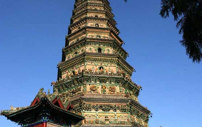 密檐之上,即為塔剎,自上向下由寶珠、七重相輪、寶裝蓮花式覆缽等組成,高約3.5米。全塔外部,原來都敷以白灰皮。版權(quán)所有山東聊城聊之旅國際旅行社有限公司,轉(zhuǎn)載必究!塔室內(nèi)空,由四面券門可至。塔室上層以疊澀內(nèi)檐分為10層,最下一層內(nèi)壁仍作十二邊形,二層以上,則改為八角形。這種富于創(chuàng)造與變化的建造工藝,表現(xiàn)出我國勞動人民的高超建筑才能。