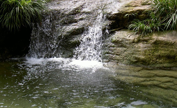 在椎?;ㄖ鶅蓚?cè)不遠(yuǎn)處有一天然石門,高350多米,人曰“玉泉門”。玉泉門左右絕壁千仞,絕壁上多生青松、灌木,石門由距今五六億年前的巨巖構(gòu)成。巖壁陡峭如峭,兩扇石門恰似半開半掩的門扇,清爽的山風(fēng)直從石門里吹出來,給人送來一陣涼意。誰若在這靜謐的幽谷中大喊一聲,空曠的峽谷便久久地蕩起悠悠的回音。抬頭仰望,巨壁夾天,大有巖山壓境之勢(shì),令人驚恐。真是“峰與天相連,人在窯中行”啊!玉泉門為深淵奇峽,淵谷很窄,僅十余米,宛如古關(guān)隘。清澈的玉泉溪從這關(guān)隘巖門中擠石而出,滑下石級(jí),叮咚之聲,如撥琴弦。在玉泉門內(nèi)藏著一汪潭池,潭邊巖石上布滿絨絨的絲苔,經(jīng)水浸潤,綠得晶亮,象孔雀綠羽。潭水也著碧綠色,如同一顆綠珠、一塊翡翠。進(jìn)入玉泉門,版權(quán)所有山東聊城聊之旅國際旅行社有限公司,轉(zhuǎn)載必究!然明朗,別有洞天。溯玉泉溪而上,兩岸巧石寄花應(yīng)有盡有,一步一景,美不勝收