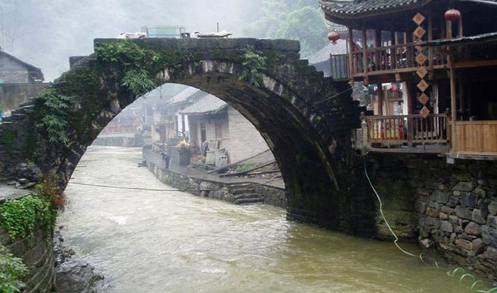 德夯苗寨的民居是清一色的青瓦木板屋,幾條縱橫交錯(cuò)的青石板路編織著百余戶人家。九龍溪穿寨而過,一座古樸典雅的石拱橋橫跨山溪。每年“接龍”這天,橋上橋下彩旗飄揚(yáng),人群熙攘,嗩吶鑼鼓喧天。來自四鄉(xiāng)八寨的人們身著節(jié)日盛裝,簇?fù)碇?ldquo;龍女”,組成一支浩浩蕩蕩的接龍隊(duì)伍登橋而過,去寨旁的玉泉門“接龍”。象這樣大型的苗家傳統(tǒng)活動(dòng),還有“苗鼓節(jié)”“清明歌會(huì)”、“趕秋”、“百獅會(huì)”等,版權(quán)所有山東聊城聊之旅國際旅行社有限公司,轉(zhuǎn)載必究!令你有常來常新之感。活動(dòng)之后,你可應(yīng)邀去苗家做客,感受苗族人民的生活習(xí)俗,品嘗苗家風(fēng)味的陰米茶、五谷飯、酸魚、酸肉及包谷澆酒。還可應(yīng)邀加簧火晚會(huì),觀賞苗家姑娘小伙為你表演“跳鼓”、“接龍”、“尤拳“等傳統(tǒng)文藝節(jié)目,同他們共舞同歡。每年9月,還可來這里觀看一年一度的國際攀巖比賽。