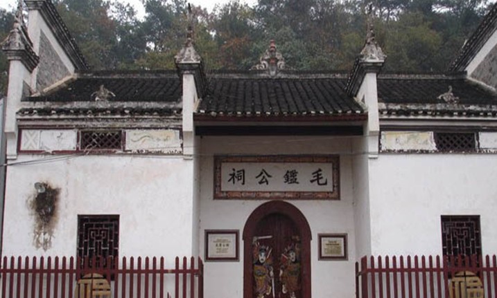 第一門,是毛氏宗祠匾額,對聯(lián)為“入此門尊宗敬祖,出斯戶睦族和親”。門亭四面翹角,經(jīng)卵石路十余丈。