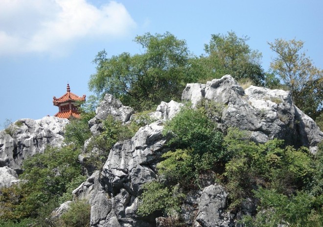 石林位于溶洞山頂,是古生代地殼變動(dòng)而形成,距今有3億多年,面積1000余畝。 山上怪石嶙峋,奇花異草點(diǎn)綴其間,相依叢生,風(fēng)光明媚。有桃花谷、松漠亭、達(dá)開峰、藤穿石、象鼻石、強(qiáng)盜床、雙龍戲珠、騎虎難下、八戒戲嫦娥等景觀。景點(diǎn)林濤如潮、林谷如云,讓你猶如步入仙境般的身臨其境。千畝如詩如畫的石林中古樹名木遍布,珍禽異獸出沒,野花遍地開,小鳥林中鳴,置身其中,如至夢幻中,以奇石、奇樹、奇藤、奇峰著稱。奇石:造型奇特、惟妙惟肖,有形狀似白兔、鯨魚、山羊、山猴、野豬、蛇、大象、龍等動(dòng)物,這里石石皆景,景景不同。奇樹:古樹盤踞、丹桂叢聚、翠竹搖拽,與奇石緊緊摟抱。奇藤:千年古藤、環(huán)石纏繞,藤纏樹、樹纏藤。奇峰:青山幽谷,流水叮咚,這里有強(qiáng)盜峰、松漠亭、獨(dú)秀谷、情人谷、幽情谷、南星巖、神寶峰、獅嘯峰、珍珠巖等。攀上光明頂,極目遠(yuǎn)眺,那蒼蒼茫茫的林海,時(shí)隱時(shí)現(xiàn)的群峰,風(fēng)光明媚的田園風(fēng)光盡收眼底。置身于此,如到了世外仙境之中,令您流連忘返。