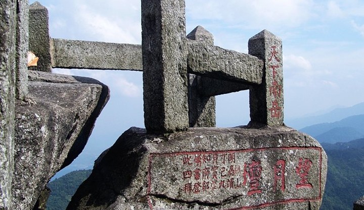 現(xiàn)在山頂?shù)淖H诘钍乔迩∈辏?751年)下詔重建的,石墻鐵瓦。祝融君這位職掌南離的火正宮,經(jīng)過歷代帝王的神化和加官進爵,由隋、唐兩代的“司天王”到宋朝的“司天昭圣帝”,制擬帝王,祀以國典。祝融殿自清朝乾隆重修后,因風(fēng)霜蝕剝,民國二十一年,時任湖南省主席的何鍵又捐資重修。1982年南岳管理局重新翻修,始成為現(xiàn)在的面貌。祝融殿高踞祝融峰頂,構(gòu)筑在一個奇石重壘、風(fēng)急云涌的百多平方米的頂隙里,可以想見當(dāng)年建筑的艱辛。從祝融峰麓的上封寺到峰頂?shù)淖H诘?,有花崗石路層層梯接到峰頂?shù)紫?,石路兩旁,矮松成竹,山花爛漫,頗為潔致。從峰頂?shù)啄_通到祝融殿山門前石砌平臺,有三十多級陡峻的花崗石臺階。山門是座牌坊式建筑,牌坊上有“祝融峰”三字石額,卻未額為“祝融殿”。門兩側(cè)有對聯(lián):“寅賓出日,峻極于天。”前者指清晨五到六點時太陽升起,后者說祝融峰頂比天還高峻。這副對聯(lián)的句子集自《詩經(jīng)》,對仗工穩(wěn),渾然天成,又切合祝融峰頂景物,極具匠心。祝融殿右側(cè)走廊有另一條小門通向望月臺。望月臺比祝融殿正殿基約高2-3米,是花崗巖風(fēng)化后裸露而成。整塊巖面不到4.5平方米,靠邊處圍上石欄,既可臨風(fēng)小坐,也可憑石欄桿眺望。因為它是最高點,所以空景無際,山風(fēng)襲人,瀟湘帆影,遠近山巒,盡奔眼底。望月臺石上原有不少石刻,因為刻在臺面石上,版權(quán)所有山東聊城聊之旅國際旅行社有限公司,轉(zhuǎn)載必究!風(fēng)雪侵蝕,游人摩挲、踐踏,許多已漸磨滅?,F(xiàn)存的有明朝嘉靖丁巳(1577年)九月寶慶知府書刻“望月壇”三個約50厘米見方的字,鐫刻在巖的內(nèi)壁上,楷書橫排。其余在臺石上與臺內(nèi)外峭壁上的石刻還清晰可辨的有“竣極”、“仰止處”、“果是高”、“青云在望”、“青云滿袖”、“山不厭高”、“覺夢處”、“千維綠”、“天外幽賞”、“壽比南山”、“唯我是高,尊峙寰中”等等,大都不知是何年何代刻品。