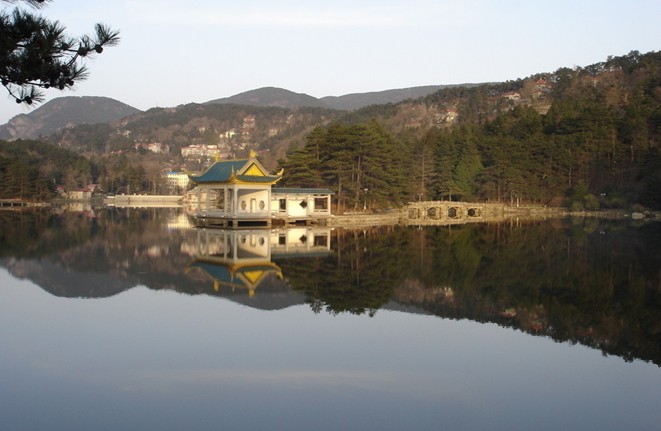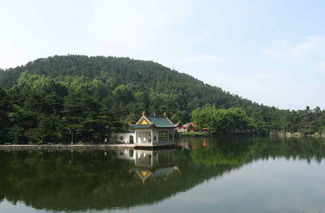 如琴湖的景致美極了!首先映入眼簾的是湖岸及周圍濃濃的綠意。除了遠處牯嶺山坡間那紅紅黃黃的屋頂在綠樹叢梢探頭探腦之外,其余放眼望見的都是醉人的綠。廬山的物種資源豐富,植物分布有亞熱帶叢林,有熱帶常綠闊葉林,有溫帶落葉闊葉林,還有寒帶特征的針葉林,以及一般灌木林、混交林等。所以,不同季節(jié)呈現(xiàn)不同的變化;就是在同一季節(jié),也有多樣化的展現(xiàn)。就拿眼前湖山,滿目蔥蘢不同樹種的林帶來看吧:近水邊是一抹純玉般的翠綠,其后是一片染著鵝黃色的嫩綠,再往外是一幅斑駁夾雜的草青、麥綠,往山頂看去,就是一派似乎染了淡墨的濃濃郁郁的黛綠。難怪團友中有人贊嘆:廬山展現(xiàn)的大自然的綠就像一塊調(diào)色板,綠得深淺有致,版權(quán)所有山東聊城聊之旅國際旅行社有限公司,轉(zhuǎn)載必究!綠得層次分明。我們不妨再欣賞湖面:由于這里巒嶺相依,縱橫圍抱,更使這半山湖泊顯得水光閃爍,把遠遠近近的花、草、竹、木、山、樓、亭、橋的倒影都吸納湖里,把多層次多變化的大片綠色也凝結(jié)在湖里。我不由吟起一首詩:“湖山湖水兩青青,迎沐東風一片情。小徑廊橋嘉樹美,落花猶自帶詩聲。”在這里真是有“小徑廊橋”的:如琴湖橢圓形的湖心島西邊,就建有一水榭,配建的九曲廊橋與湖岸相連;島上四周蒼松吐翠,有小徑供游人漫步。在這里呼吸著清新沁人的空氣,你真會陶醉在綠的懷抱和詩的意境里。