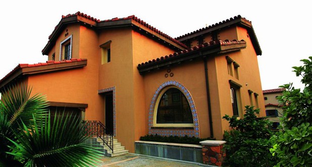 再觀那別墅,映入眼簾的是一片綠色的世界,綠門(mén)、綠窗、綠欄、綠柱、綠廊,而屬于建筑第五立面的屋頂,也漆成了墨綠色,而連那原先的灰褐色石墻,也因“爬墻虎”、美國(guó)凌霄爬滿而終成綠色,予人靜謐安寧而又清新的感受。