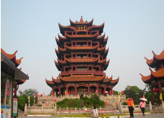 唐代詩人崔顥一首“昔人已乘黃鶴去,此地空余黃鶴樓。黃鶴一去不復(fù)返,白云千載空悠悠,晴川歷歷漢陽樹,芳草萋萋鸚鵡洲。日暮鄉(xiāng)關(guān)何處是,煙波江上使人愁。”已成為千古絕唱,更使黃鶴樓名聲大噪。而李白的《與史郎中欽聽黃鶴樓上吹笛》“一為遷客去長沙,西望長安不見家。黃鶴樓中吹玉笛,江城五月落梅花”更是為武漢“江城”的美譽(yù)奠定了基礎(chǔ)。