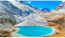 牛奶海,又叫俄絨措,古冰川湖,狀如水滴,四周雪山環(huán)繞,湖水清瑩碧藍(lán),山止成瀑,以其玲瓏秀雅水色翠藍(lán)而著名。牛奶海在央邁勇的山坳里,呈扇貝形,中間是碧藍(lán)的雪水,周邊則是一圈乳白色環(huán)繞,這圈乳白色大致就是牛奶海名稱的由來。近岸邊的水略有些黑色,下面都是遠(yuǎn)久植物的沉積,往里面是淺綠色的一帶,再深處便是碧藍(lán)色的水面,藍(lán)得透亮。海子微微有些流動,陽光透過云層在上面不停地掠過,于是它也如寶石般變幻著光彩,時而黯然,時而耀眼,時而又飄忽不定。海子邊是片片草甸和碎葉叢,軟軟的,像塊綠色的絨布,小心地呵護(hù)著這塊寶石。草甸上面是堅(jiān)硬石壁,還有沙石灘,顯得格外冷峻。 牛奶海是美麗的,遠(yuǎn)遠(yuǎn)望去,仿佛碧玉鑲嵌在雪山之中,純凈安詳。純凈的湖水給人以平和安寧的心境,而藍(lán)湛湛的海子并不透明,顯得神秘莫測。