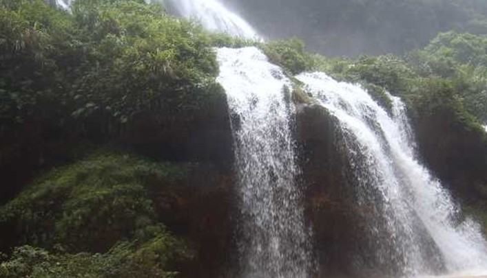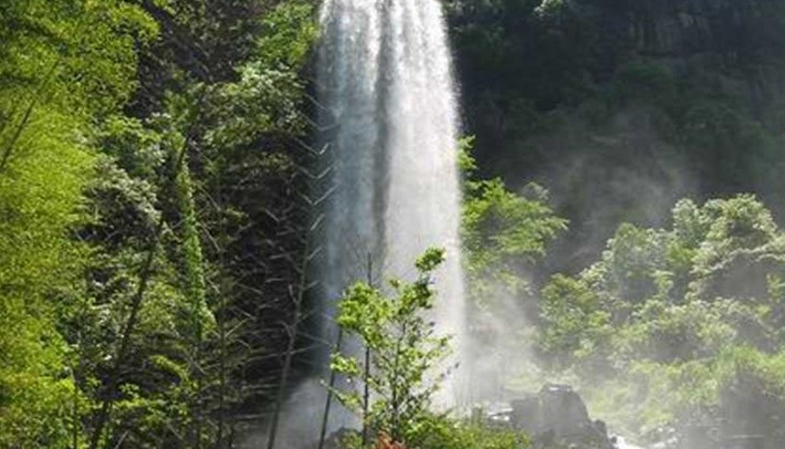 王村東側(cè)有一條小溪,湍急的溪水從北向南即將匯入酉水時(shí),突從懸崖飛瀉而下,形成一條高約60米、寬約40米的瀑布,氣勢(shì)磅礴。王村瀑布分為兩級(jí),飛流先從崖頂直瀉而下,