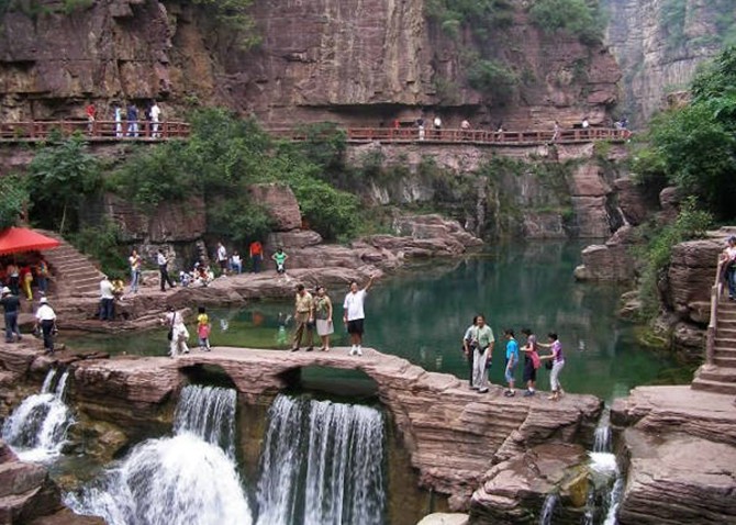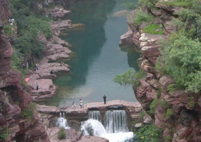 中國(guó)道教研究所所長(zhǎng)、張?zhí)鞄煹诹宕障祩魅恕⒅袊?guó)道教協(xié)會(huì)副會(huì)長(zhǎng)張繼禹道長(zhǎng)為云臺(tái)山題詞:“天師二十四治之蒼溪云臺(tái)山”。 1995年,山西師范大學(xué)美術(shù)系教授袁有根來(lái)此實(shí)地考察,意外驚喜的發(fā)現(xiàn):云臺(tái)山全貌竟與“太極陰陽(yáng)八卦圖”驚人的相似!云臺(tái)山黛青的山體呈魚(yú)形,“魚(yú)頭”所在叫“舍身崖”,據(jù)傳當(dāng)年張道陵命弟子王長(zhǎng)、趙升在此投身絕壑以取仙桃,由此脫去凡軀,版權(quán)所有山東聊城聊之旅國(guó)際旅行社有限公司,轉(zhuǎn)載必究!得以升仙;白霧飄渺的山側(cè)空谷亦呈魚(yú)形,“魚(yú)眼”為谷底一天然清泉,泉水清澈甘甜,冬暖夏涼。兩“魚(yú)”一黑一白,一動(dòng)一靜,一實(shí)一虛,一陰一陽(yáng),首尾相交,渾然相合。主山體周?chē)€有八個(gè)山丘,分別為紫陽(yáng)山、銅鼓山、博樹(shù)埡、文成山、雙山埡、文筆埡、北斗山、冒火山,構(gòu)成“八卦”。