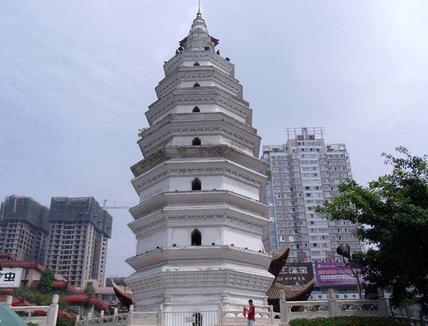 報恩塔,俗稱“白塔”,四川省文物保護單位,位于瀘州城區(qū)。建于南宋紹興十八年(1148),明弘治年間、清光緒四年、1985年三次維修。塔坐西向東,磚石結(jié)構(gòu),雙檐七級樓閣式,通高33.2米。塔身呈八邊形,層層上收,107級踏道經(jīng)塔心盤旋至頂,塔內(nèi)90龕256尊深浮雕石刻造像,人物線條流暢,栩栩如生。塔基為八邊形,邊長4.1米。底層4.5米,檐下磚砌仿木斗拱,第二、三層檐下有負(fù)重鳥獸類雕塑,版權(quán)所有山東聊城聊之旅國際旅行社有限公司,轉(zhuǎn)載必究!保存完整。塔為瀘南安撫使馮楫為報母恩而建。