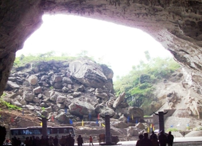 位于天泉洞后洞出口處的小巖灣大漏斗、大巖灣大漏斗,為喀斯特溶斗,尤為壯觀。其中小巖灣大漏斗直徑650米,深208米。絕壁大都呈豎線條,色澤青灰,銀光閃爍,宛如飛瀑懸垂。絕壁中段有2000多米自然棧道與天泉洞后洞出口處相連。與之相隔400米的大巖灣漏斗,東西直徑700余米,南北直徑450米,最深處230米,呈葫蘆狀,與天梁洞相通。它們都大大超過(guò)被稱為世界第一的美國(guó)阿里西波大漏斗(直徑330米,深70米)。