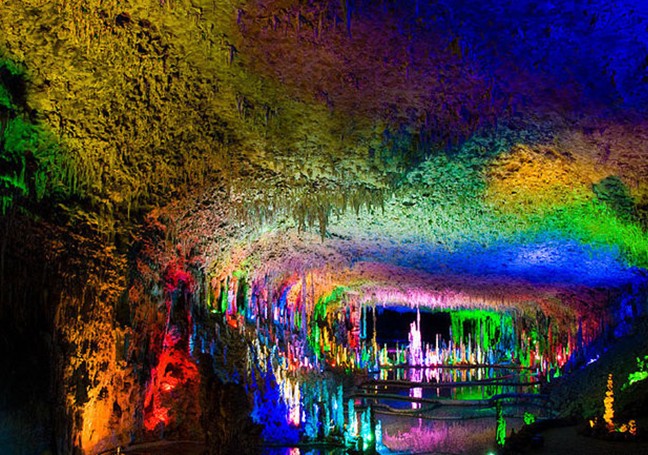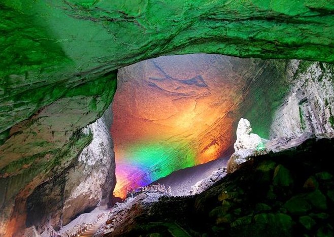 開(kāi)放游覽主洞第三層、第四層,面積8.l萬(wàn)平方米,分為穹廬廣廈、長(zhǎng)廊石秀、云步通幽等7個(gè)大廳。各大廳景觀別具一格,鐘乳、石花、石緯、石柱等組成琳瑯滿目、五光十色的景致。主洞內(nèi)有寬敞的大廳,也有迂回的長(zhǎng)廊;有對(duì)峙的"高山",也有臥波的"長(zhǎng)橋";各種鐘乳石巖溶于奇異狀,瑰麗萬(wàn)端,宛如一個(gè)金碧輝煌的地下宮殿。主洞兩旁又有耳洞、吊洞等10余個(gè)大溶洞,上下交錯(cuò),版權(quán)所有山東聊城聊之旅國(guó)際旅行社有限公司,轉(zhuǎn)載必究!形成洞中有洞、洞下有洞的奇觀,并有陰河穿流其間。陰河河水清澈,魚(yú)兒漫游,有發(fā)出微微磷光的亮蝦;有珍稀的玻璃魚(yú),形如蝌蚪,小巧玲瓏,顏色粉紅,全身透明,肝膽可見(jiàn),聽(tīng)覺(jué)靈敏,難得一見(jiàn)。
