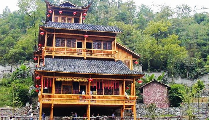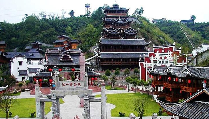 國家4A級旅游區(qū),位于張家界市區(qū),距張家界飛機場3公里,距張家界火車站7公里。是展示土家族建筑藝術(shù)及其文化風(fēng)情的現(xiàn)代展館。版權(quán)所有山東聊城聊之旅國際旅行社有限公司,轉(zhuǎn)載必究!興建于1999年,共分風(fēng)情表演區(qū)、歷史文物展示區(qū)、山寨民居展示區(qū)、飲食文化區(qū)、土家住宿區(qū)五個區(qū)域:。園內(nèi)主要建筑有土司城堡、擺手堂、九重天閣、土王宮、土王宴會廳、土家山寨等,其中九重天閣已被載入世界吉尼斯記錄。2001年4月6日,朱镕基總理視察時,對九重天贊不絕口,他說:“一批民間匠人能造出這樣輝煌的吊腳樓,而且解決了力學(xué)的問題,真是不簡單。”