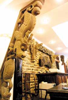 粵唯鮮位于天津小洋樓集中區(qū)域—五大道附近,這里不僅僅是家餐廳,它的另一個招牌是華蘊博物館,馮驥才為它題詞:“能吃的博物館”,也算是中國唯一了。華蘊博物館所陳列的展品囊括了西周至清朝各個歷史時期最典型的青銅器、銅器、木雕、石器、老門窗、彩繪木人、煙具、屏風、座鐘、桌椅、木箱、提盒、老鐵、鐘等100多種的3000余件文物最早的可追溯到公元二三千年前。華蘊博物館的特色之處還有世界上第一的石頭酒吧?;浳r的石頭酒吧開創(chuàng)了石文化第一,這里擺放的石頭多是漢白玉的,囊括了北齊、北魏、宋元明清等朝代的300余塊石頭。而且石頭酒吧所收藏的漢白玉石器無論是其數量還是質量在全國乃至全世界都是一流的。酒吧的格調是中西合璧,古樸、不失現(xiàn)代風格。