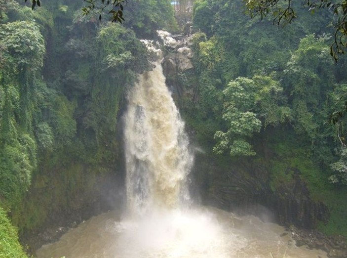 發(fā)源于騰沖縣東北部的大盈江,屬于伊洛瓦底江水系,沿途眾流匯合,水量漸豐。位于騰沖縣城以西1公里,此處四周是懸崖峭壁,大盈江水流經(jīng)此處,從30多米的高巖上跌落,響聲雷動,水花四濺,形成了“不用弓彈花自散”的壯麗景觀,據(jù)說在陽光下?,F(xiàn)出七色彩虹,非常漂亮。大盈江從北向南貫穿騰沖壩子,在流經(jīng)云南騰沖縣城西1千米的地面時,遇到1個巨大的斷層崖。
