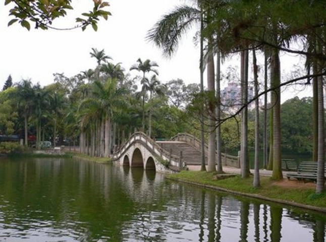 人民公園又稱白龍公園。面積50多萬平方米。圓內(nèi)有一約7萬平方米的白龍湖,湖水澄碧。據(jù)宋人王象之《興地記勝》載,宋名將狄青曾駐望仙坡,見坡下湖邊一群白羊頗似龍形。因此以白龍名此湖??梢姲埡呀?jīng)有上千年的歷史。湖岸翠竹掩映,垂柳搖曳。湖心有小島,島西的九曲橋和島北的三孔月橋?qū)u與湖岸相連。湖面的游艇,或藍(lán)天下競(jìng)渡,或綠蔭徜徉,亦成一景。