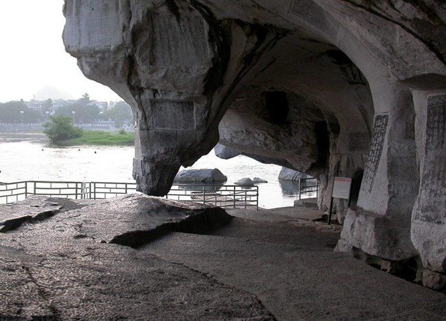 相傳古時(shí)有一老漁翁,在還珠洞拾得龍珠而惹怒海龍王,其興風(fēng)作浪,給百姓帶來(lái)災(zāi)害。后官府命老翁將龍珠歸還,方使天下太平,故此得名。洞內(nèi)玲瓏剔透,勾連曲暢,有唐人造像、宋代題刻100多件,其中宋代大書(shū)畫(huà)家米芾的題名、自畫(huà)像和詩(shī)人范成大的題詩(shī)堪稱(chēng)珍品。洞的東面豁然開(kāi)朗,洞口下面即是深不見(jiàn)底、碧波幽水的伏波潭。臨江有一石柱下垂,上粗下細(xì),底端有一寸多的空隙與地面相接,似被劍劈而開(kāi),堪稱(chēng)鬼斧神工。傳說(shuō)是伏波將軍試劍所致,故稱(chēng)試劍石。有好奇的游人,都曾伏在試劍石下方的大石塊上,伸手摸一摸這奇妙的縫隙。 千佛洞從試劍石旁沿石階盤(pán)桓而上,可達(dá)千佛洞,內(nèi)有唐代摩崖造像239尊,加上僅有斧鑿痕跡尚未成形的共有400尊之多,成為唐代崇尚佛法,佛教盛極一時(shí)的標(biāo)志,具有很高的鑒賞和研究?jī)r(jià)值。
