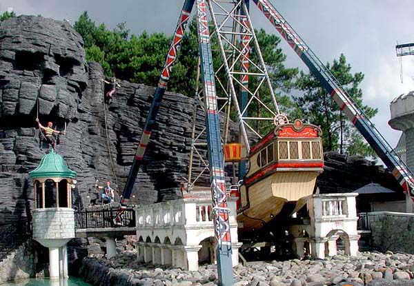 港口區(qū)以中世紀(jì)歐式景觀及建筑造型相結(jié)合為主,其項(xiàng)目有:海盜船、海盜游戲城、旋轉(zhuǎn)醉酒桶等。海盜船是您一定不可以錯過的一次極度冒險項(xiàng)目,最高擺弧140度,高達(dá)17米,你可充分體驗(yàn)海盜在狂風(fēng)暴雨的海上航行的驚險感受,過后您一定會對此次歷險回味無窮。園中還有如在港口用重炮轟船等特色娛樂設(shè)施,可讓您真正當(dāng)一回“地中海海盜”。另外該園區(qū)內(nèi)還設(shè)有歐式餐廳和歐式紀(jì)念品專賣店。