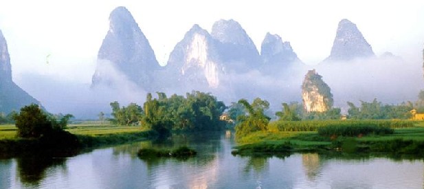 是舉世公認(rèn)的世界第一流風(fēng)景勝地。人們到桂林游漓江,主要是從桂林乘船順流而下至陽(yáng)朔這83千米的水程。這一帶峰巒聳秀,碧水如鏡,青山浮水,倒影翩翩,兩岸景色猶如百里錦繡畫(huà)廊。沿途主要景點(diǎn)有象鼻山、穿山、斗雞山、精品上,凈瓶山、磨盤(pán)山、冠山 、繡山、 仙人推磨、畫(huà)山、黃山倒影、螺螄山、碧連峰,書(shū)童山等。這里的景色無(wú)比秀美,單是那江里的倒影,就別有一番情趣。那水里的山,比岸上的山更為清晰;而且因?yàn)樗牧鲃?dòng),山也仿佛流動(dòng)起來(lái)。山的姿態(tài),也隨著船的位置,不斷變化。漓江景色之奇還在山光水色之變化,在清晨,在中午,在黃昏,各有其姿,變化萬(wàn)千。尤其是在春雨迷蒙的早晨,江面象浮動(dòng)一層輕紗般的白蒙蒙的雨絲,這時(shí)的山水就更具有一種朦朧之美。